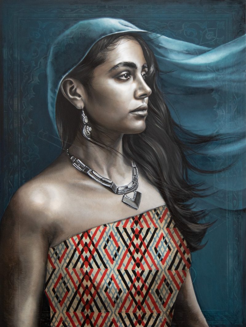 Nazanin, 2025, oil and mixed media on linen, 91x121cm